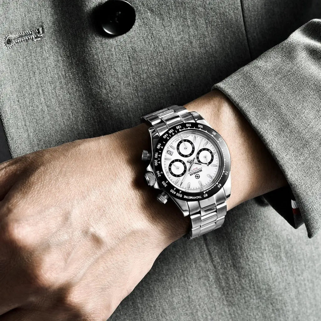 LUXAURA 1644 PLATINUM BLUE  Premium materials and casual design, Sapphire dial window, full 316L stainless steel construction with screw-down crown, solid and flexible watchband with classic deployment clasp